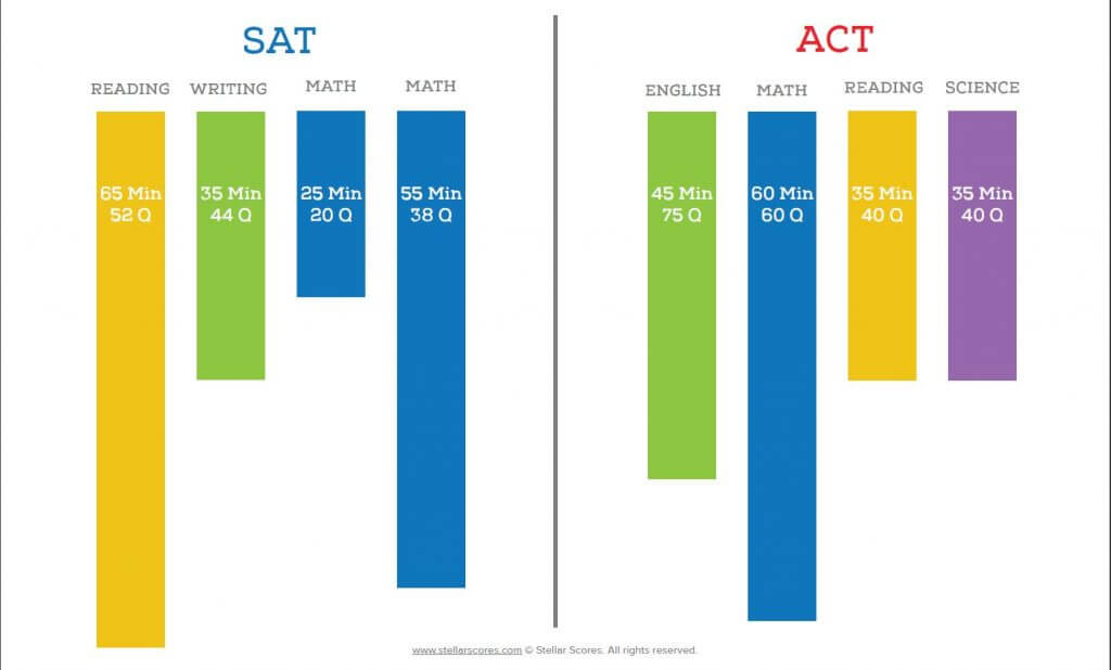 Though they cover similar material, the two tests are also different. The ACT is a lot faster. You have to answer 215 questions in 3 hours. The SAT has 154 questions in the same amount of time.